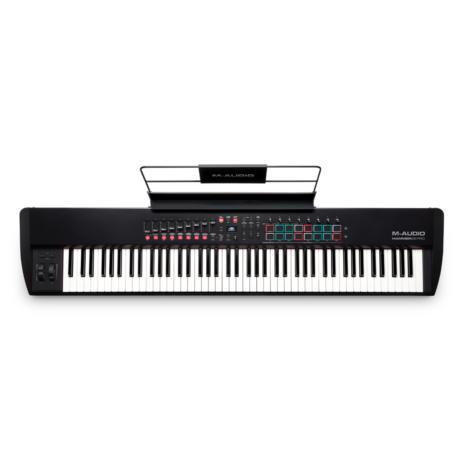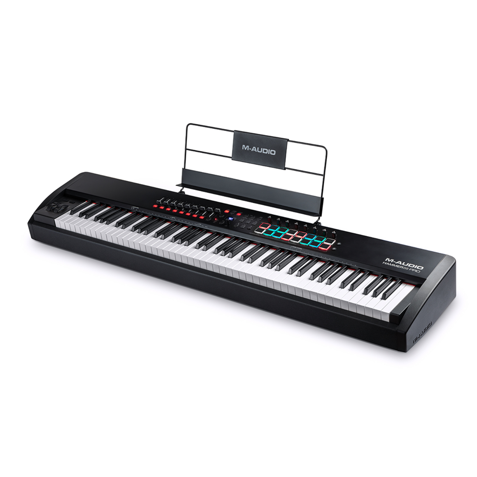 M-Audio Hammer 88 Pro este o clapa MIDI cu 88 de clape sensibile la atingere, scaled/graded hammer-action pentru si mai mult realism decat varianta simpla (Hammer 88), astfel clapele opun mai multa rezistenta la atingere la notele mai joase si mai putina la notele inalte. Cele 9 butoane si knob-uri asignabile, precum si cele 16 paduri iluminate RGB sunt o adaugire binevenita pentru producatori pe langa maparile din fabrica pentru toate DAW-urile cunoscute (Ableton Live, FL Studio etc).