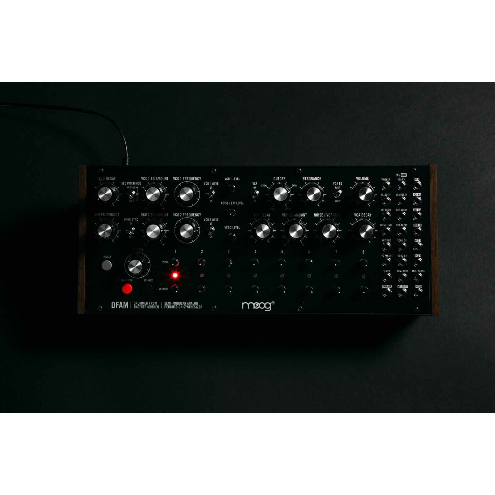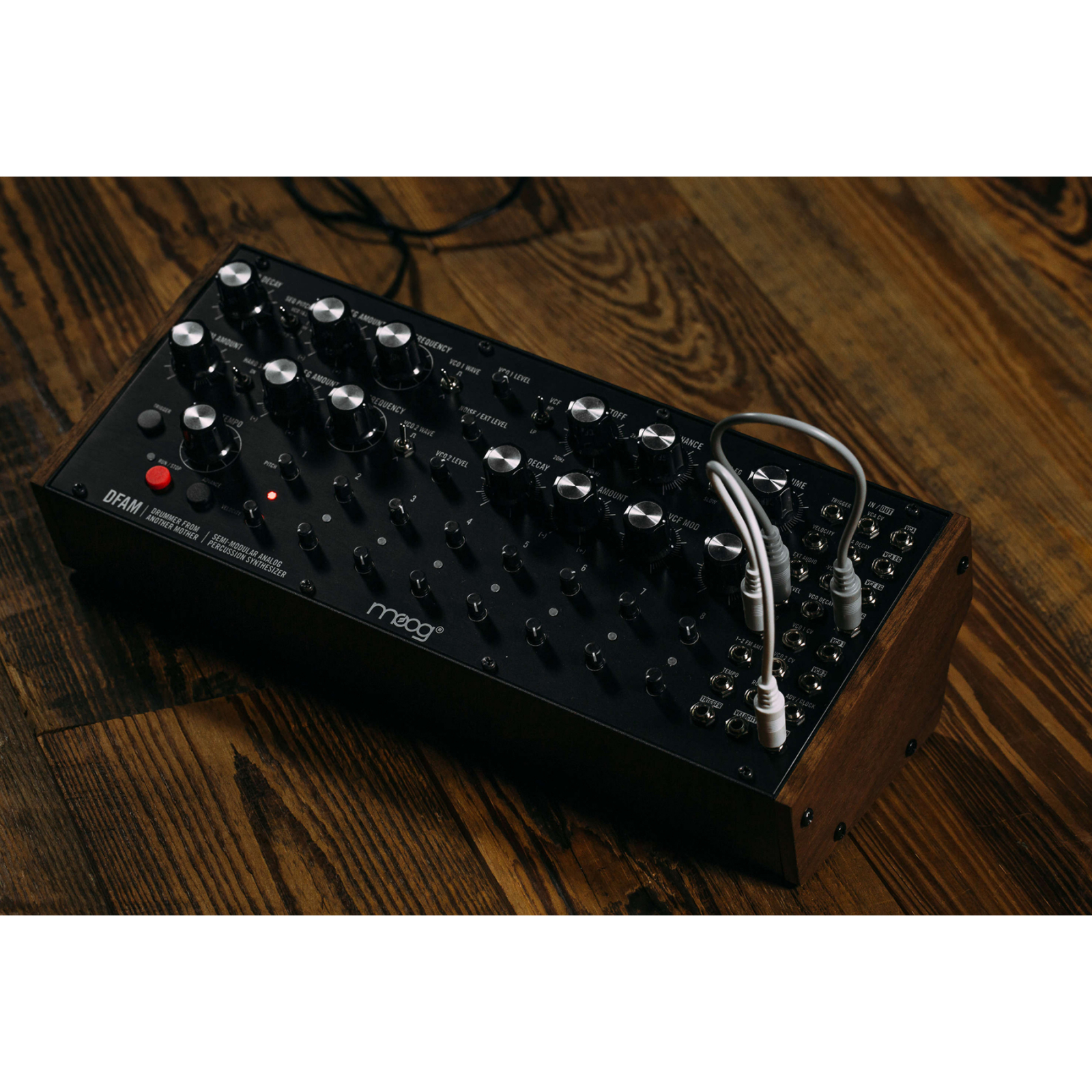 In Pachet: 1 x Sintetizator Moog DFAM, 1 x Adaptor alimentare, 1 x Manual utilizare, 1 x Afisaj suprapunere, Caburi Patch, 1 x Flyer inregistrare produs