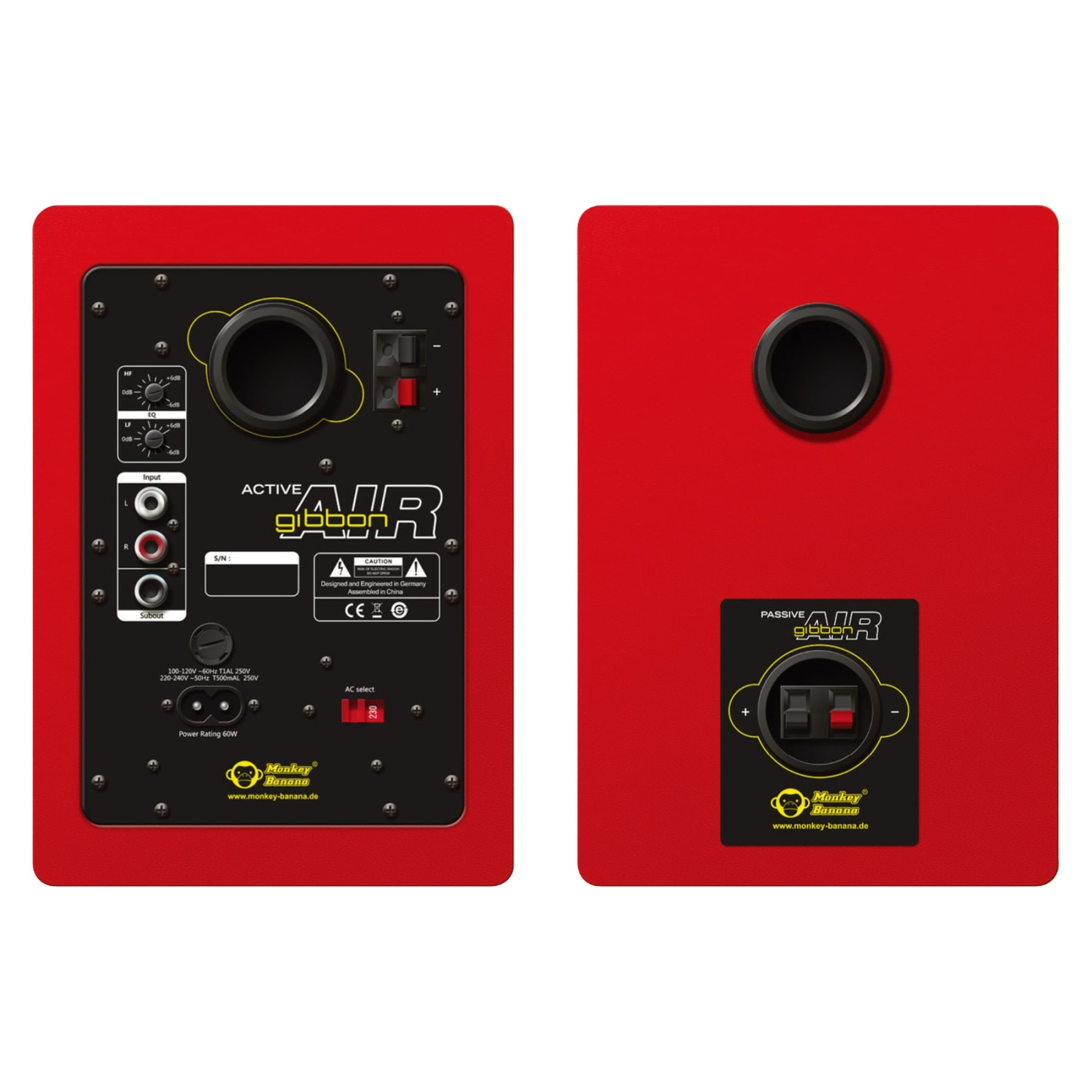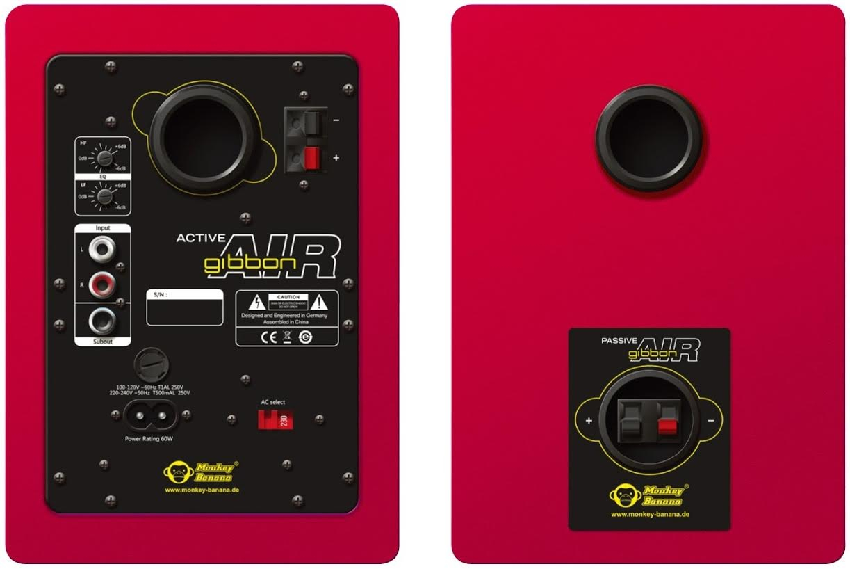 Monkey Banana Gibbon Air Bluetooth Red sunt boxe multimedia nearfield pe 2 cai bi-amplificate, cu tehnologia Bluetooth integrata. Acestea livreaza o putere totala de 60W (30W per speaker) la un SPL maxim de 90dB